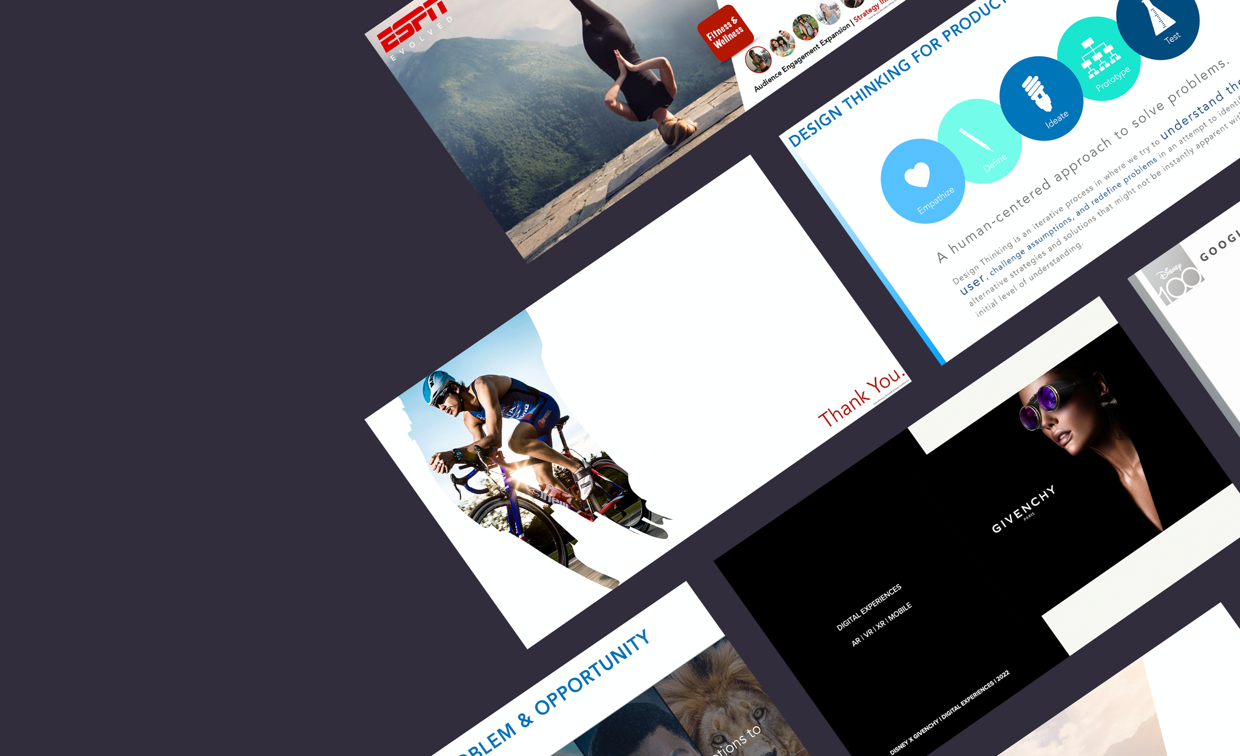 We craft thoughtful creative briefs and compelling presentation decks. Blending narrative design, visual precision, and AI-enhanced insight.